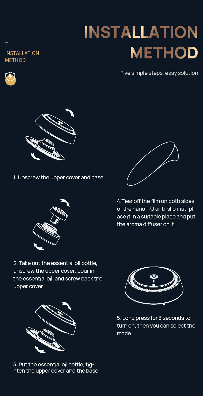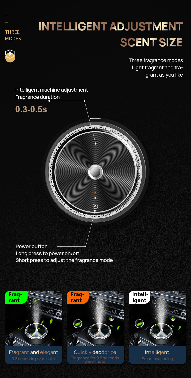 • Scent Delivery: Continuous, waterless diffusion